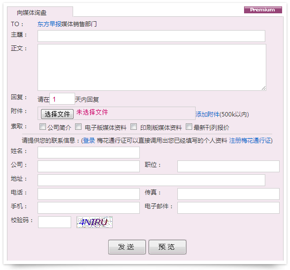 介绍网页上显示“联系人详情”,用户与媒体直接沟通