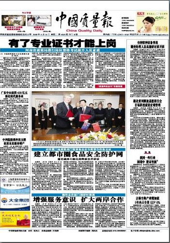 《中国质量报》是具有广泛社会影响力的唯一全国性质量日报,由国家质量监督检验检疫总局主管。《中国质量报》面向全国的企业,准确及时的报道国内外重大质量新闻,详细刊登各种优、劣产品的分析抽查结果,及时准确地对产品质量给与指导,展示企业管理的最新探索,构筑质量信息的权威平台。